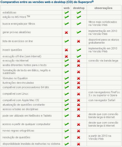fazer a atualização de minhas questões a partir de 2010? Os clientes do Super Professor® versão desktop